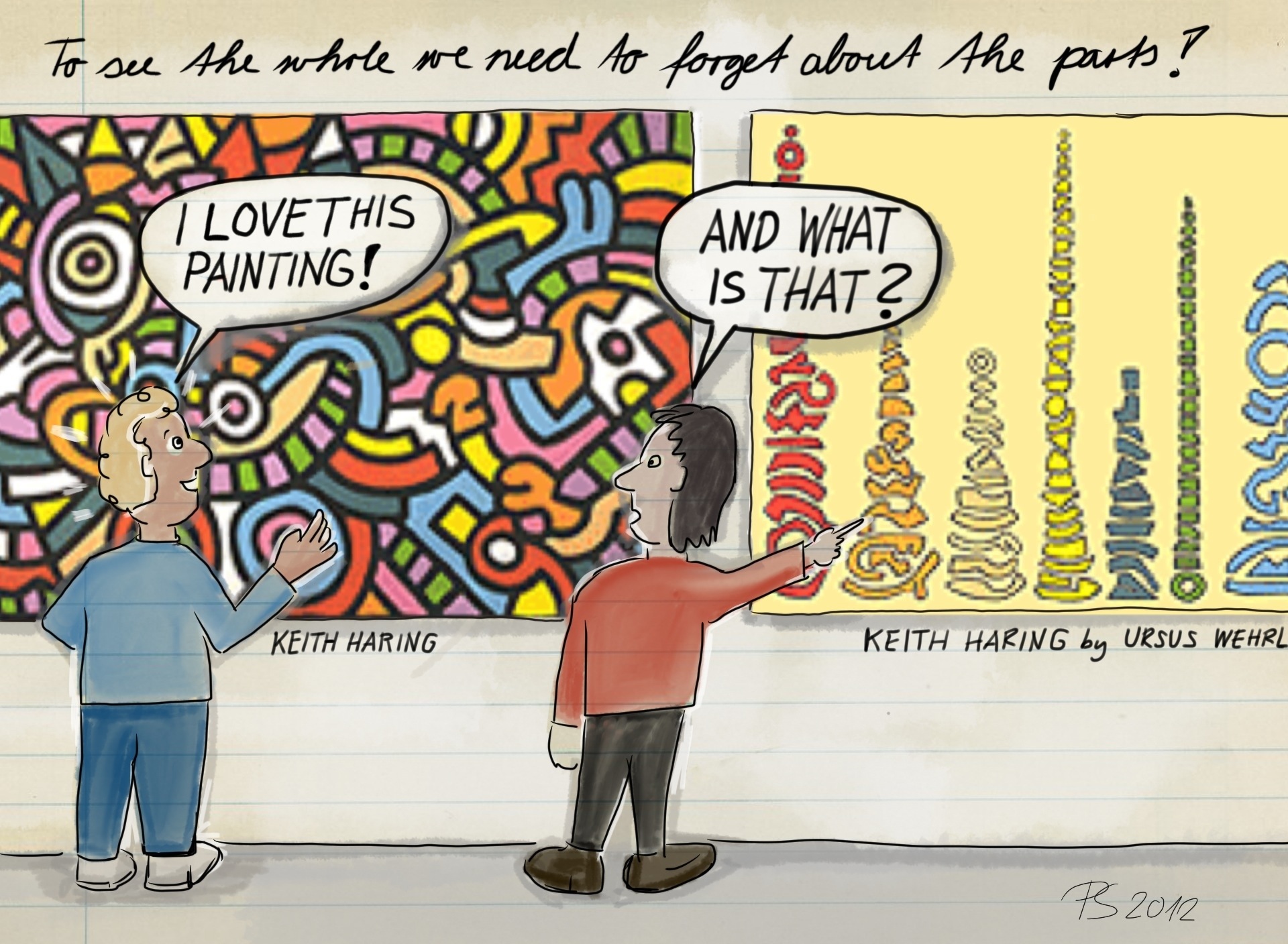 To see the whole, we need to forget about the parts. As the Swiss artist and comedian Ursus Wehrli brilliantly demonstrates: You can’t understand Keith Haring’s painting if you focus on the pieces instead of the whole.