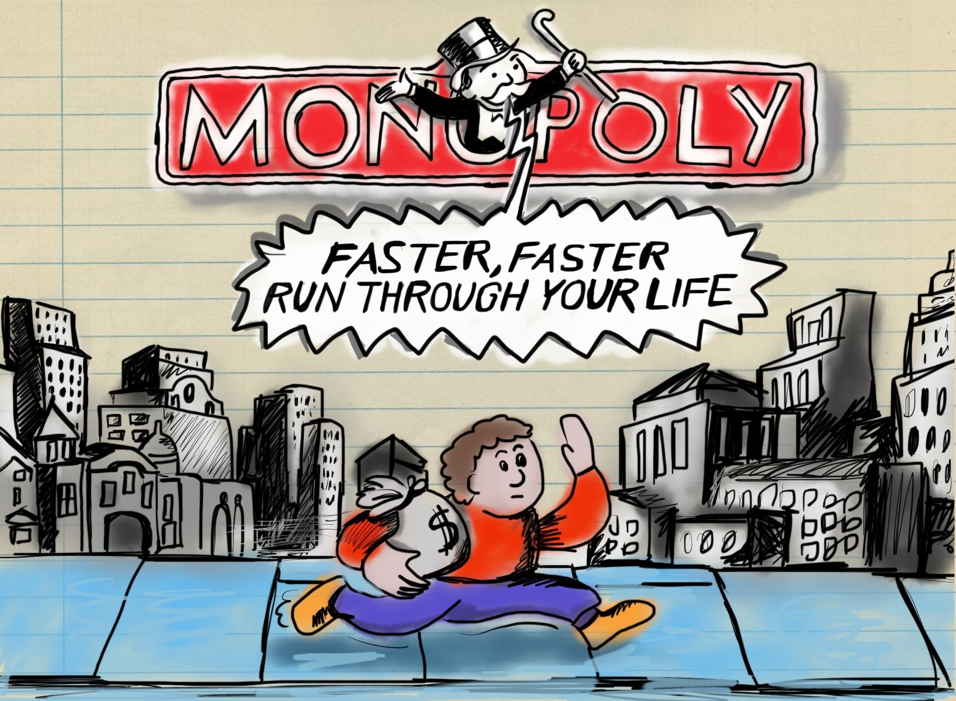 Yoga teacher Nico Luce came up with the idea to use the game of Monopoly as a metaphor for life. In a class he asked: “How does the game of Monopoly end?”