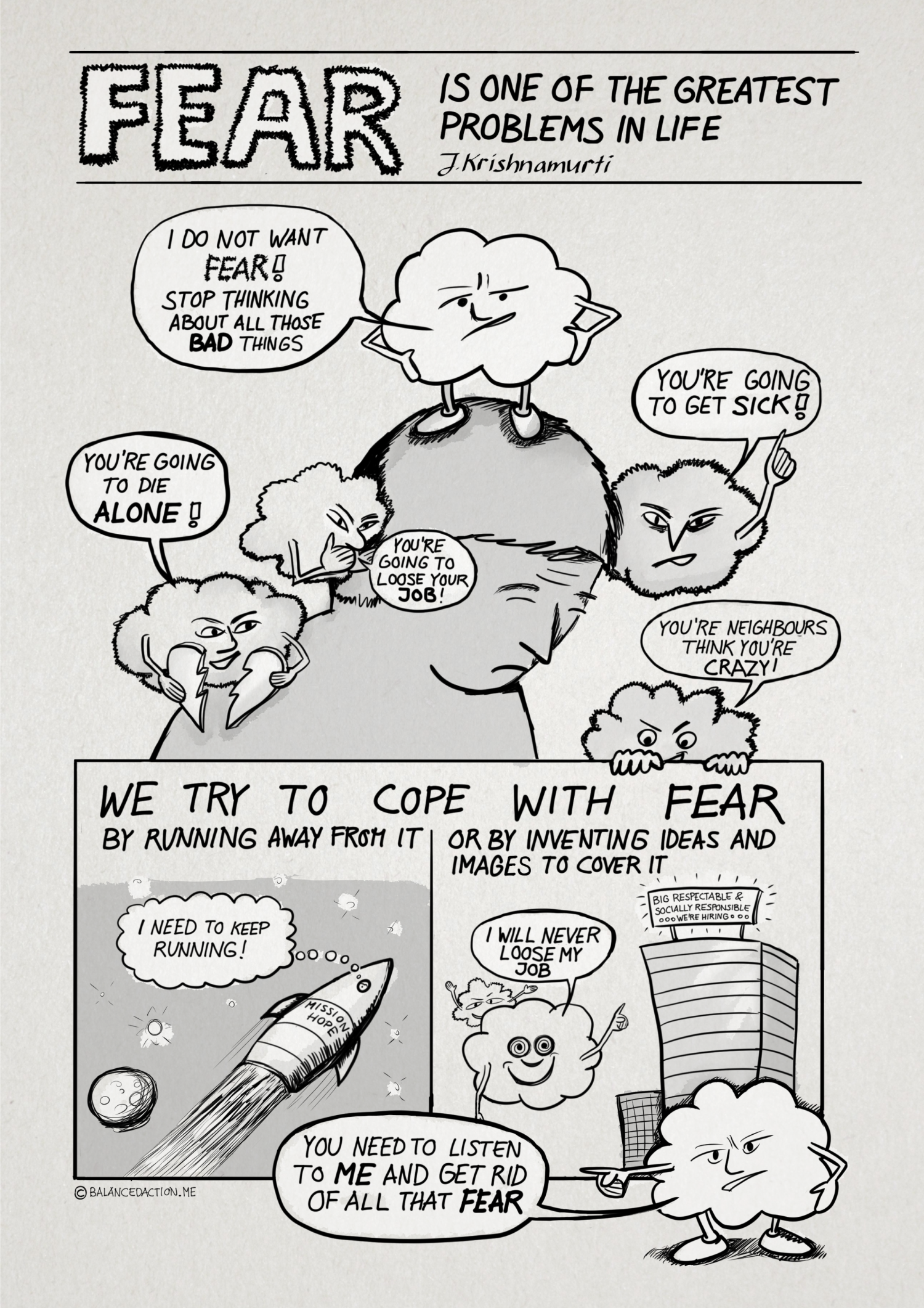 Here the complete sketchnote about fear, based on chapter 5 of “Freedom from the Known” by J. Krishnamurti.