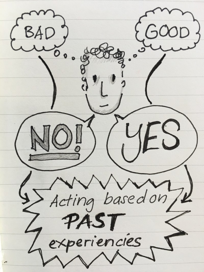 Instead of acting based on information from the present, inviting everyone to try to go beyond what did not work in the past, you steer everyone away from what feels bad to you.