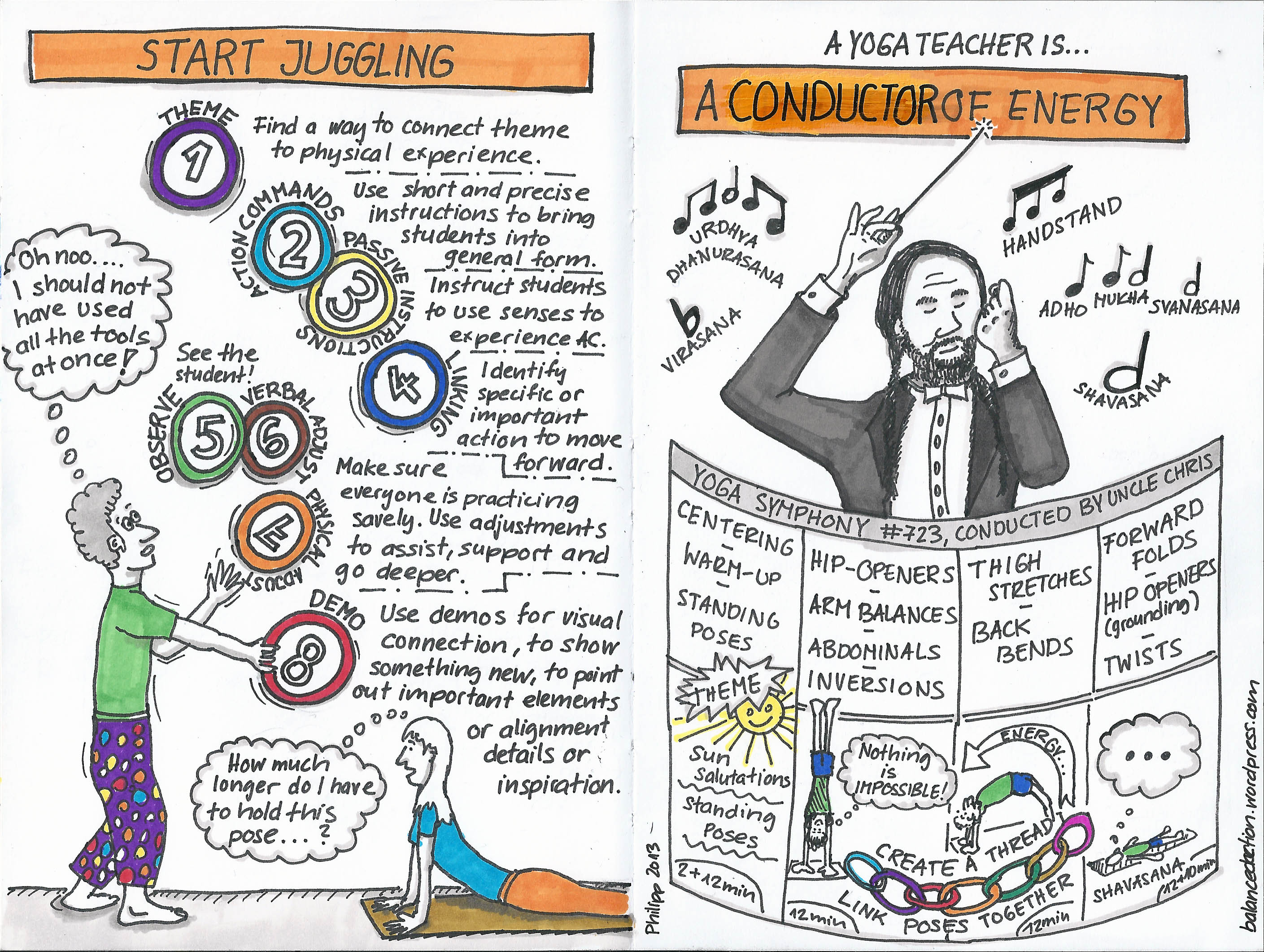 I recently started to create sketchnotes when attending Yoga workshops or trainings. Using words and pictures I can better capture and remember what I learn. Some friends and fellow yogis asked me if I could share my notes, so here they are.